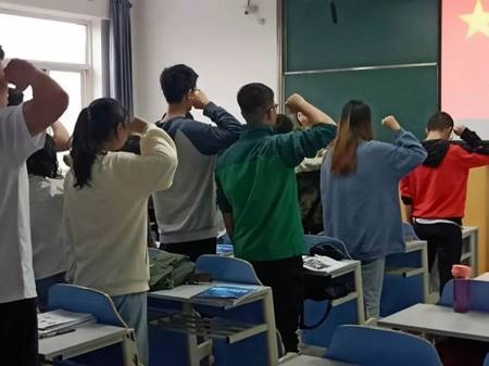 活动伊始,各团支部学生齐唱共青团团歌《光荣啊,中国共青团》。各团支部书记通过ppt为大家展示讲解九一八事变的历史故事,使同学们了解九一八事件的深沉意义。同学们一起回顾历史纪录片《九一八》,直观的感受并中华民族受到过的伤害和苦难。其中,材成191团支部讲述了赵一曼等人的英雄事迹,使同学们牢记祖国的历史创伤,激起更强烈的民族精神。