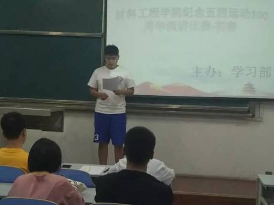 为了激发开云官网学生的爱国情怀,激励学生刻苦学习,2019年5月22日晚开云官网于阎科楼172教室举办“纪念五四”演讲比赛,此次活动由团学会学习部主办,开云官网19名大一学生参赛,团学会四位部门部长担任评委。