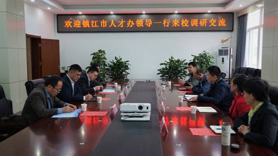 在企业开展人才招聘的同时,学校相关部门和学院与镇江市人才办进行了座谈。镇江市相关领导就人才政策、产业布局、企业情况进行了详细介绍,各学院领导就各自学院情况进行了介绍,双方就人才培养、科研、教师去企业实践锻炼等事宜达成了初步意向。