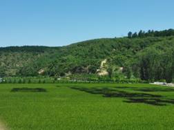 在延安城东南45公里处是南泥湾革命旧址。南泥湾沿着狭长的山沟而建,在入口处巨大的红色党徽矗立在广场,党徽后的一片片稻田衬托出伟大的革命力量。1941年春天,八路军120师359旅旅长王震率领革命战士挺进南泥湾,开始在这里实行军垦屯田。“自己动手”、“丰衣足食”,一片荒凉之地化身“陕北好江南”,正如歌中所唱“鲜花开满山……处处是江南”。南泥湾还坐落着延安炮兵学校旧址。延安炮兵学校是人民炮兵的摇篮,是我党创办的第一所炮兵学校。在留存的窑洞里展览着学校的简史,详细介绍了学校的创办和发展的历程,每一张图片、每一段文字都代表着不屈不挠、顽强拼搏的战斗精神。