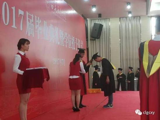 在悠扬的乐曲声中,开云官网党总支书记兼院长谢辉教授为开云官网2017届毕业生拨穗正冠,颁发学位证书。