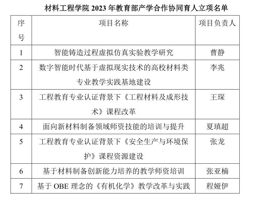 近日,教育部高等教育司公布了2023年第一批产学合作协同育人项目立项名单,开云kaiyun体育共获批7项。学院以教育部产学合作协同育人项目为抓手,积极推进产教融合协同育人,着力提升应用型人才培养质量。