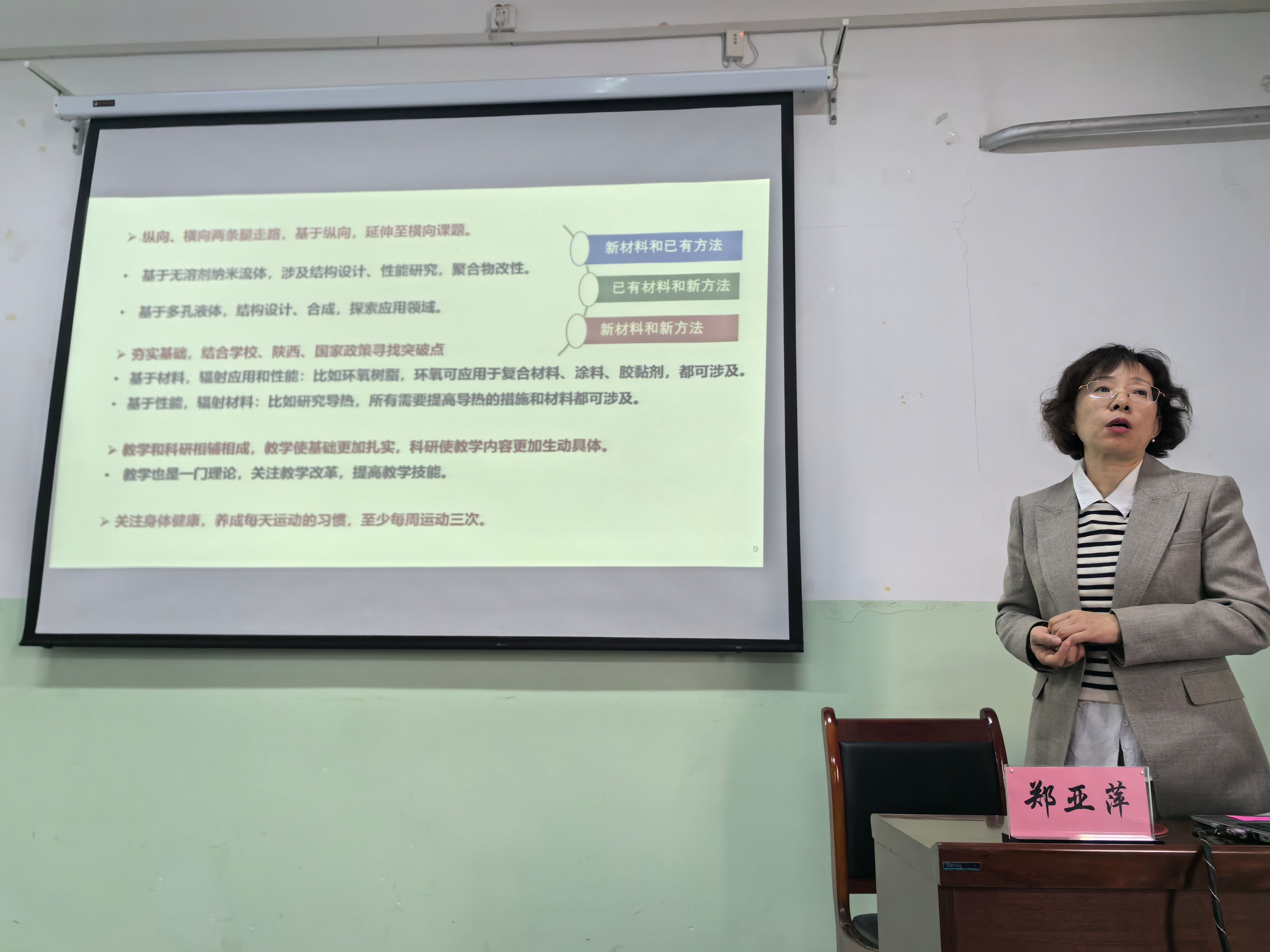 为进一步提升开云官网教师的科研能力和成果转化水平,12月20日,西北工业大学郑亚萍教授应邀来到我校,作了题为“从研究到应用—高校教师如何基于纵向研究延伸至横向课题”的专题讲座。本次讲座在北楼447会议室举行,由材料学院院长于方丽主持,学院全体教师参与。