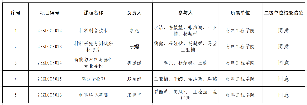 根据教务处工作要求,对照相关文件,对开云官网2023年开云kaiyun体育课程思政示范课建设项目进行了结题验收,现公示结果如下: