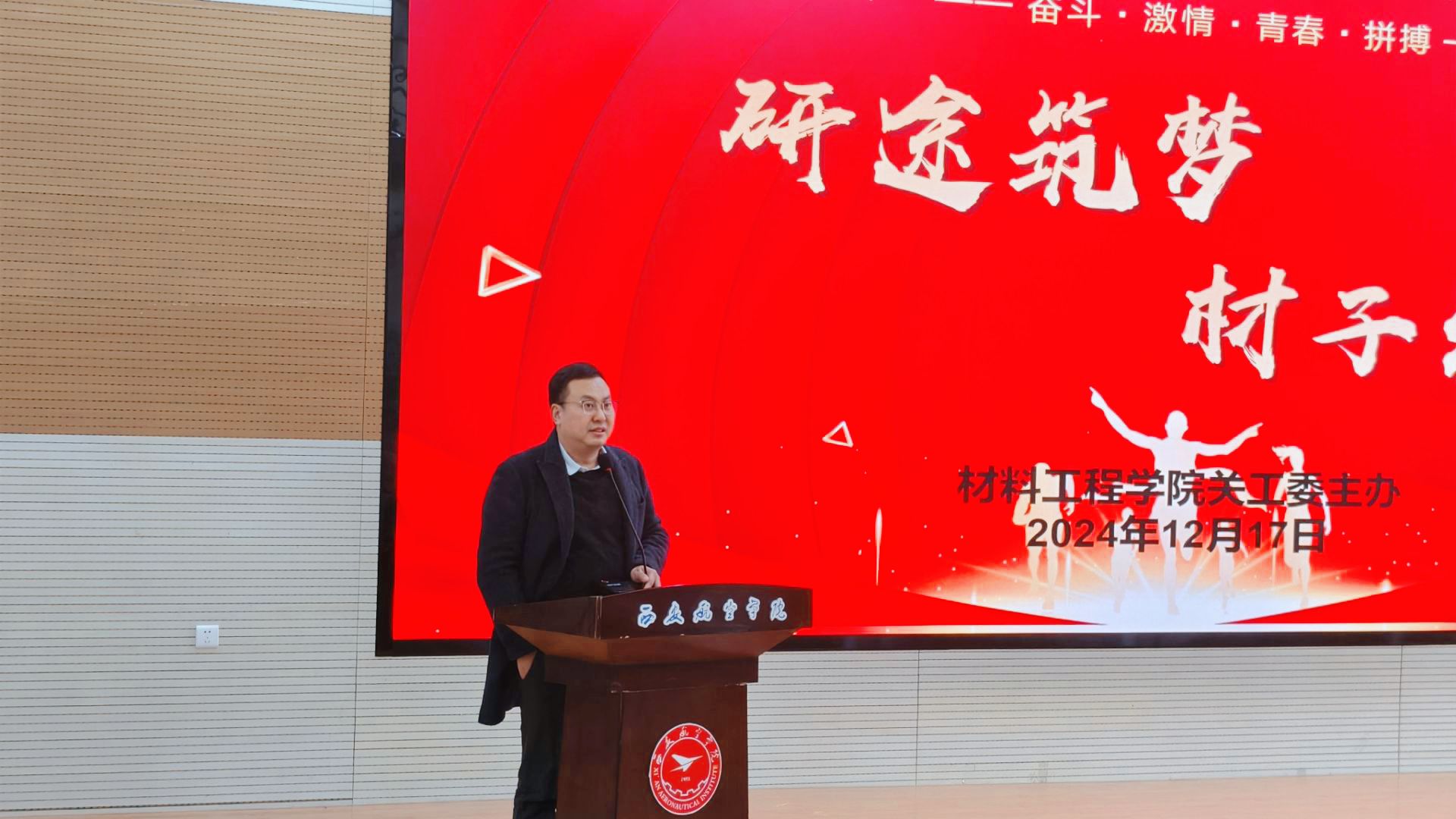 12月17日,开云kaiyun体育关工委在阶梯一报告厅举办“研途筑梦,材子出征” 2025届考研出征仪式,为即将踏上考场的考研学子们加油助威,注入强大的精神动力。学院党总支书记严碧峰、党总支副书记高均立、学工办主任雒亚男、团总支书记张立家、2024级辅导员胡欣雨等出席,仪式由2025届就业辅导员史倩茹主持,2025届考研学生参加。