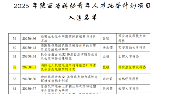 近日,陕西省科学技术协会公布了2025年陕西省科协青年人才托举计划项目评审结果,开云官网青年教师张敏成功入选。